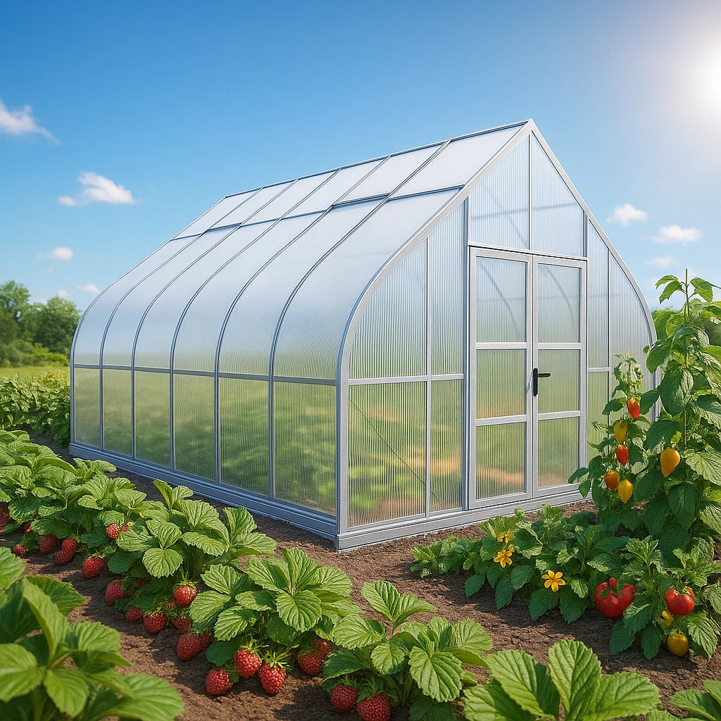 - 10mm Polycarbonate: Industry-leading strength with superior light diffusion and insulation. Keeps your plants healthy and protected year-round.